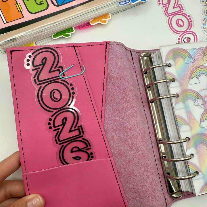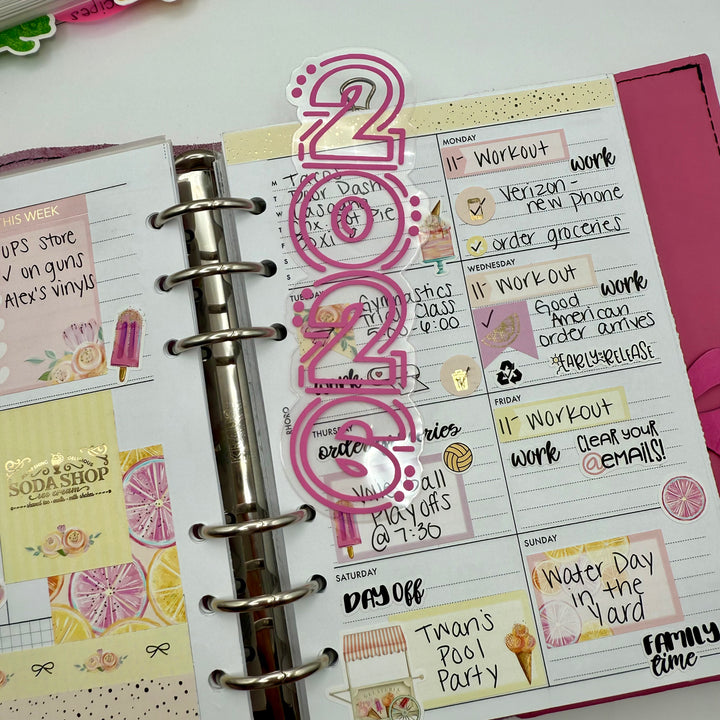 This diecut piece of thick lamination decorated with high quality adhesive vinyl is the perfect size to tuck into a planner or notebook pocket, or to clip to a page any your planner for some quick and colorful decoration.
