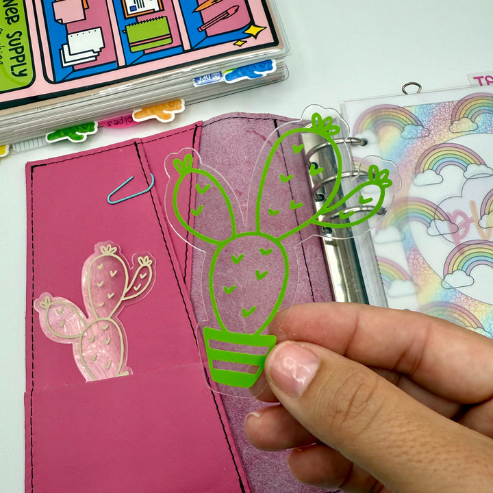 This diecut piece of thick lamination decorated with high quality adhesive vinyl is the perfect size to tuck into a planner or notebook pocket, or to clip to a page any your planner for some quick and colorful decoration.