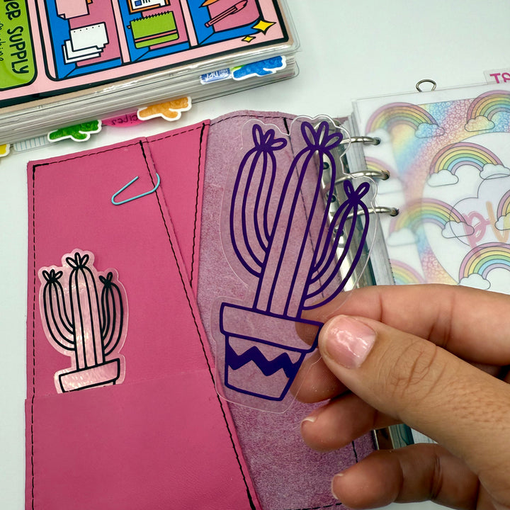 This diecut piece of thick lamination decorated with high quality adhesive vinyl is the perfect size to tuck into a planner or notebook pocket, or to clip to a page any your planner for some quick and colorful decoration.