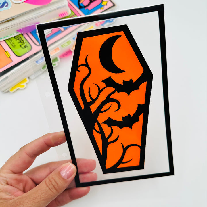 Planner dashboard with a layered vinyl image in the middle. Product is not customizable in any way other than choosing planner size and color scheme.