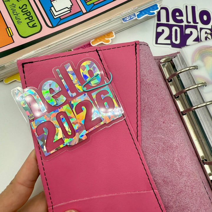 This diecut piece of thick lamination decorated with high quality adhesive vinyl is the perfect size to tuck into a planner or notebook pocket, or to clip to a page any your planner for some quick and colorful decoration.