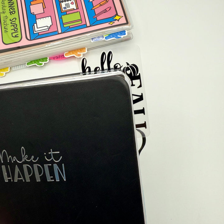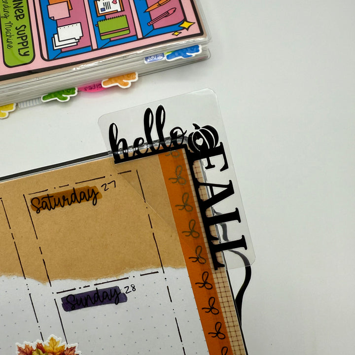 Decorate any style planner with this Hello Fall corner tab in your choice of vinyl color. Corner tabs work with any style or size of planner or notebook, they just slide over the top corner of any page.