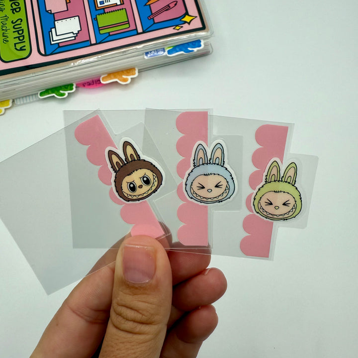 Set of 3 mini tab planner dividers – compatible with almost all planner styles and sizes. Choose your peeking image on each tab, or the same for all three, along with your vinyl color for the border.