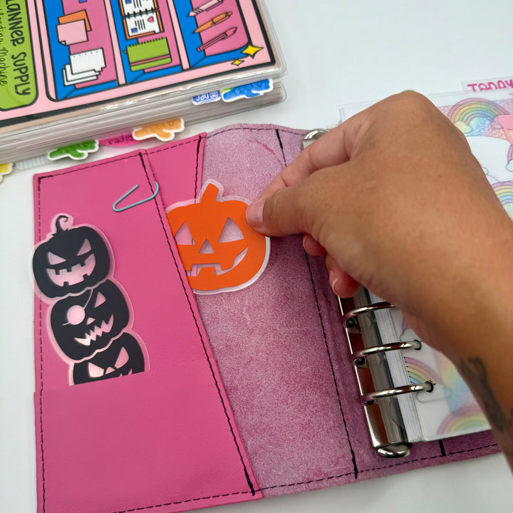 This diecut piece of thick lamination decorated with high quality adhesive vinyl is the perfect size to tuck into a planner or notebook pocket, or to clip to a page any your planner for some quick and colorful decoration.