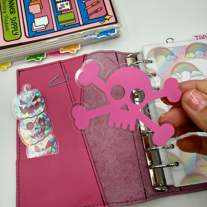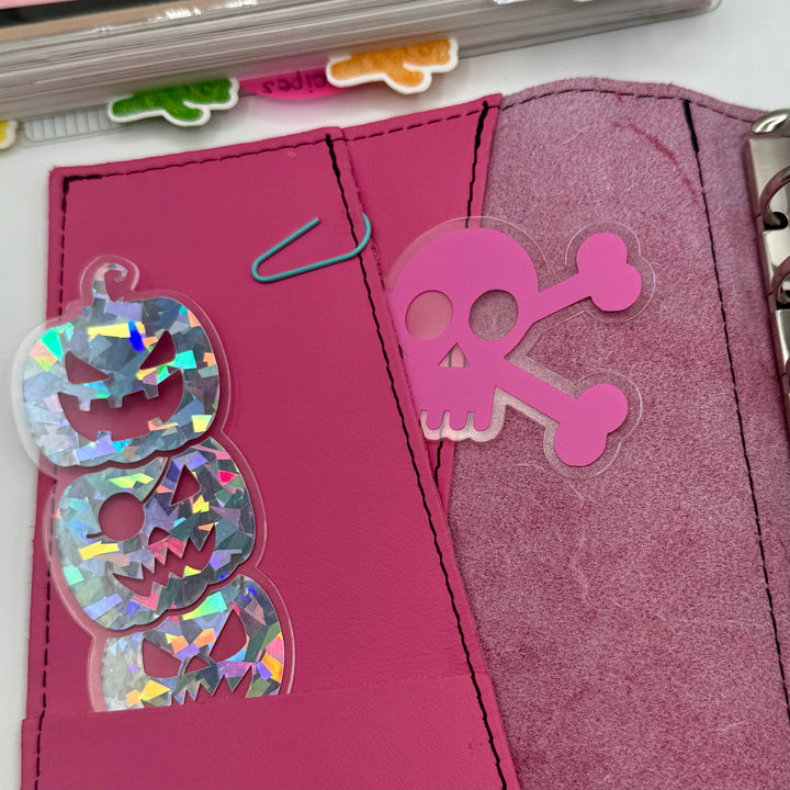 This diecut piece of thick lamination decorated with high quality adhesive vinyl is the perfect size to tuck into a planner or notebook pocket, or to clip to a page any your planner for some quick and colorful decoration.