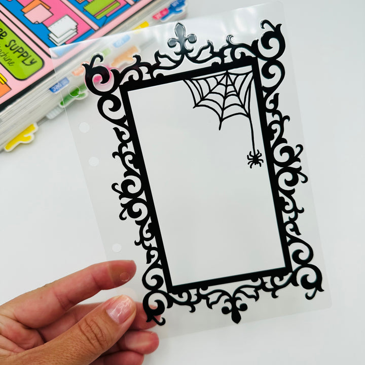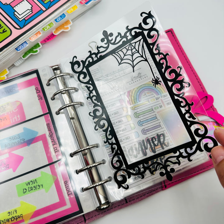 Planner dashboard featuring an ornately frame witch in the middle. Customizable with your own vinyl color choice.