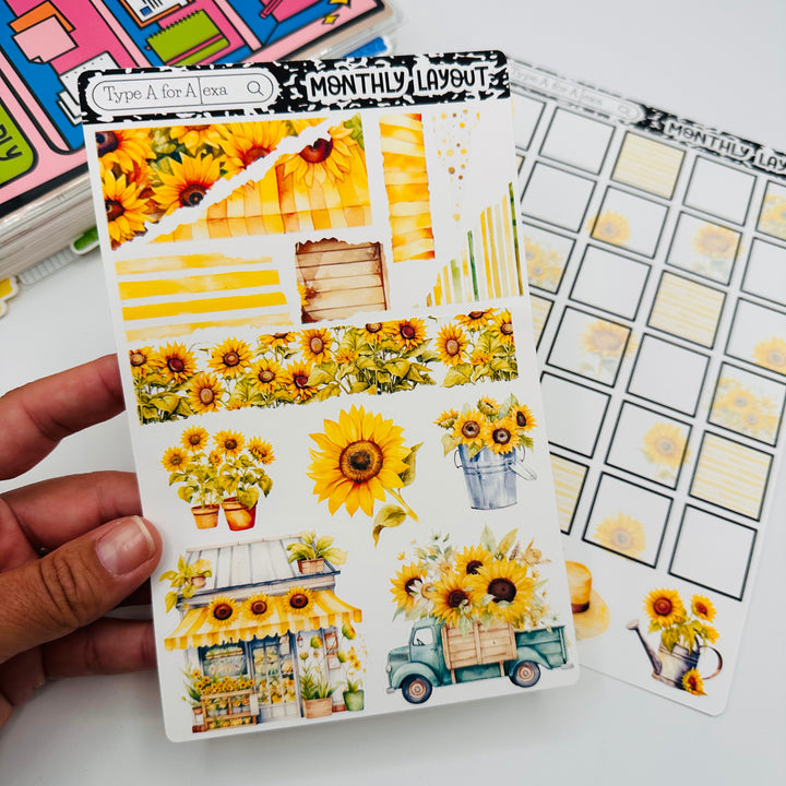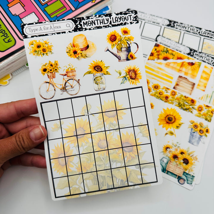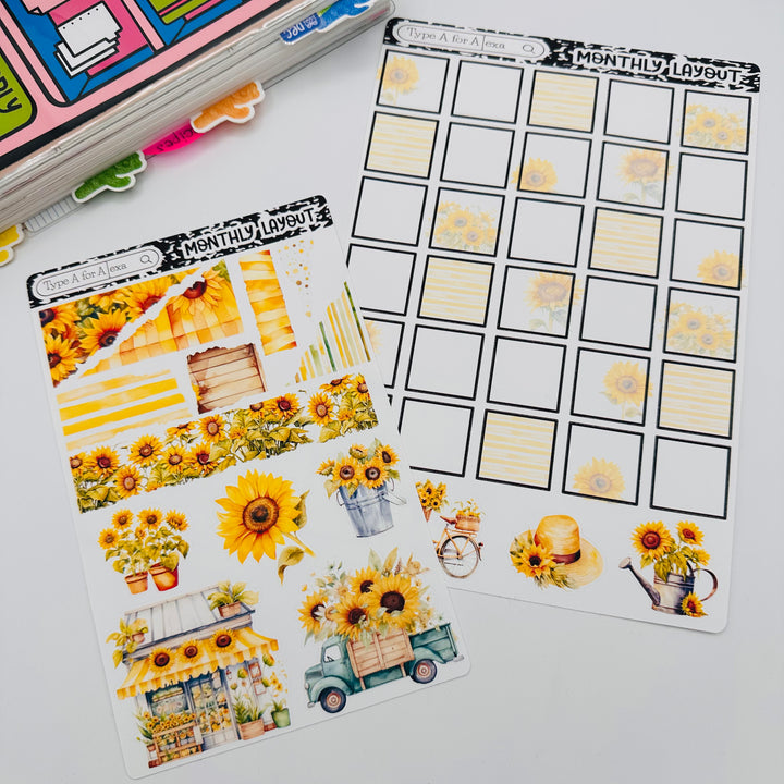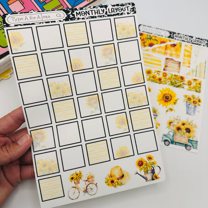 Use these 2 page monthly layout sticker kits to help create beautifully coordinated monthly spreads in any of your planners, notebooks or bullet journals. The small size fits B6 size notebooks nicely or can be used for a one page monthly spread in a larger notebook. The larger size was intended to span two pages in an A5 size notebook, but feel free to make it work for you!